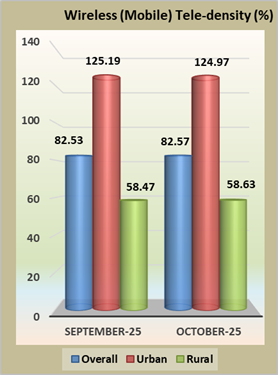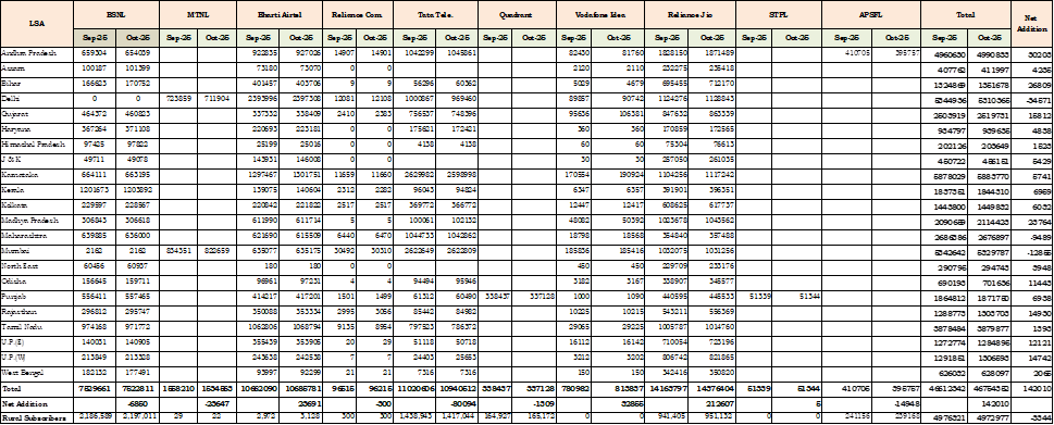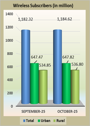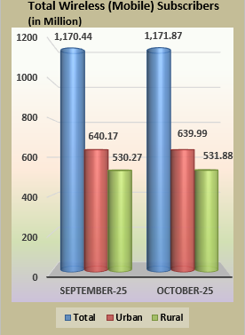 - The Number of active wireless (mobile) subscribers (on the date of peak VLR#) in October 2025 was 1094.28 million.
