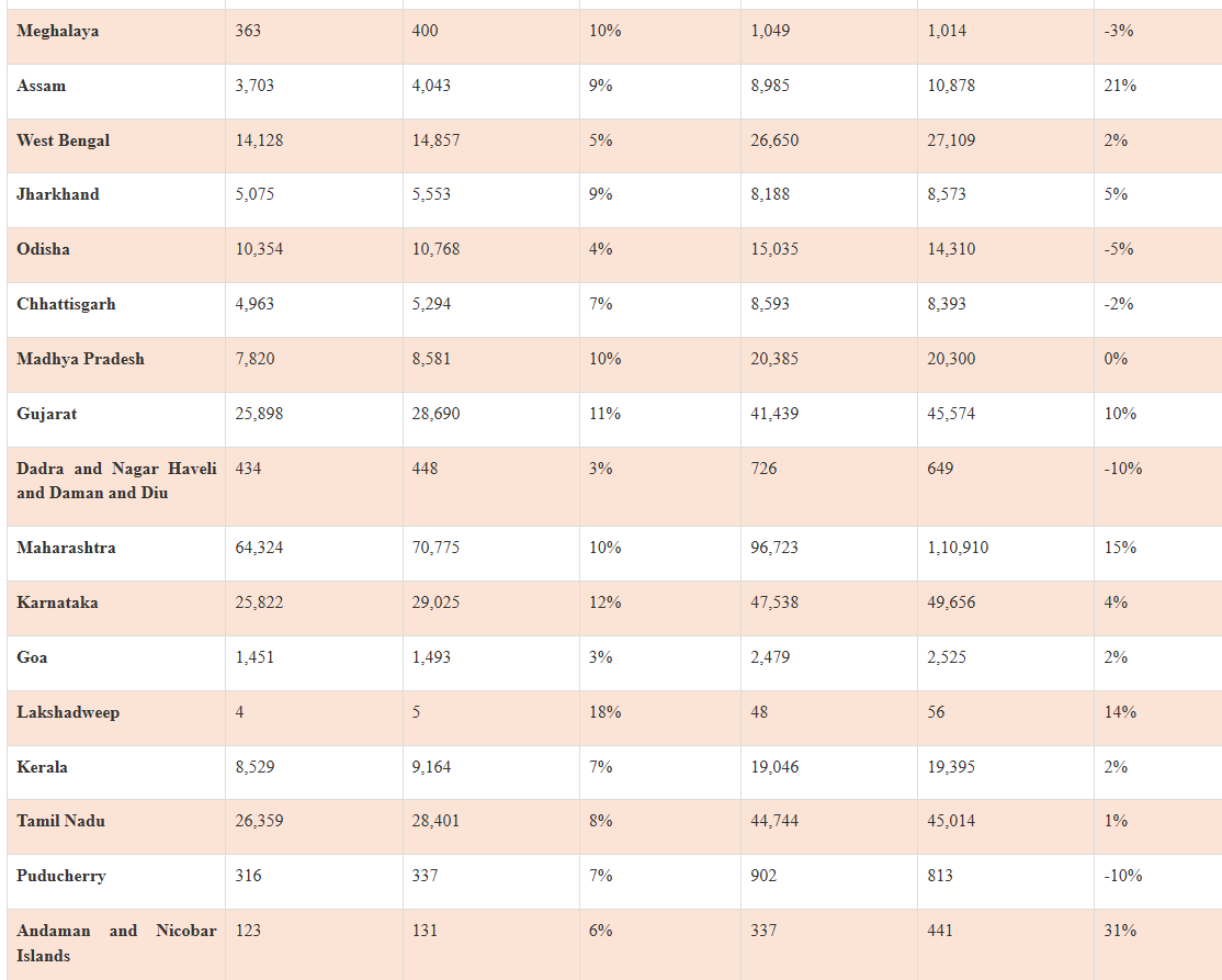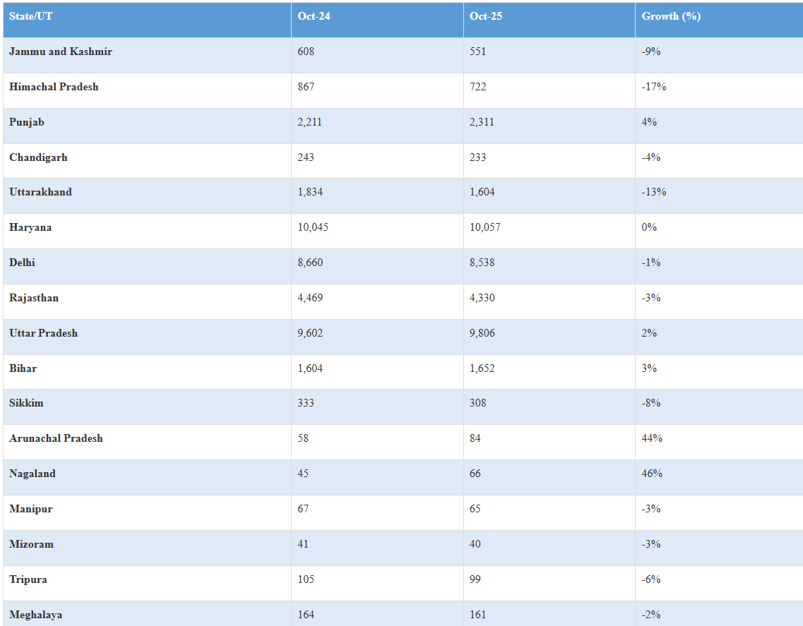 সারণি ৩: অক্টোবর, ২০২৫-এর জিএসটি রাজস্বের রাজ্যভিত্তিক বৃদ্ধি।