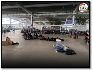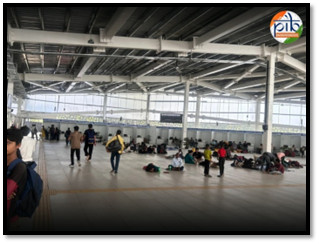 “We’ve been at the Suvidha Kendra since last evening,” says Nirmala Devi, who travelled from Gorakhpur with her husband. “He had some bank work here, and we live at the Badarpur Border. This place feels safe and secure, and all our belongings are with us, and even the washrooms are clean. Hundreds of passengers like Nirmala and Aman can be seen sitting or resting at the Yatri Suvidha Kendra, yet the space remains orderly, with no obstruction to movement.