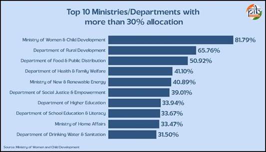 शीर्ष 10 मंत्रालय/विभाग जिन्होंने वित्त वर्ष 2025-26 के लिए लैंगिक बजट में अपने आवंटन का 30 प्रतिशत से अधिक हिस्सा देने की सूचना दी है: