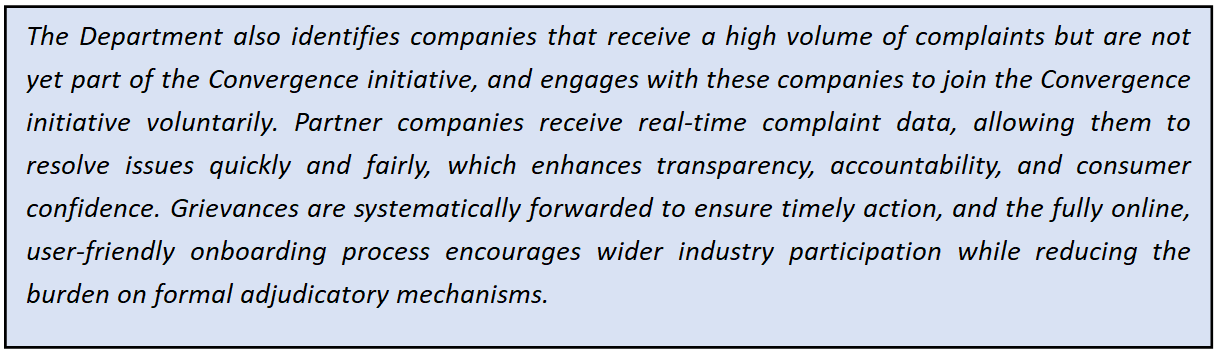 Under the Convergence initiative, companies partner with the National Consumer Helpline on a voluntary and free-of-charge basis to ensure that customer grievances are resolved quickly and amicably. Complaints are forwarded in real time, and companies are expected to respond within 30 days.