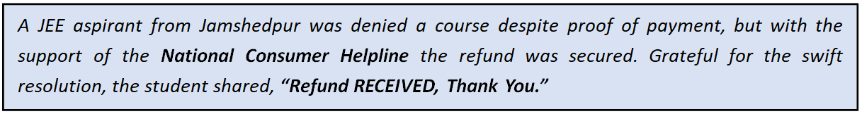 These are not just isolated success stories but clear examples of how the National Consumer Helpline acts as a lifeline for ordinary citizens. The National Consumer