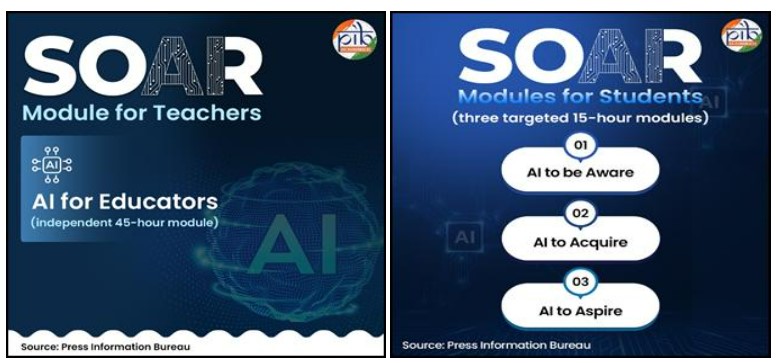 - ଏହି ଡିଜିଟାଲ୍ ଦୁନିଆରେ ଭବିଷ୍ୟତ ପାଇଁ ପ୍ରସ୍ତୁତ ଭାରତକୁ ସକ୍ଷମ କରିବା ପାଇଁ ସ୍କିଲିଂ ଫର୍ ଏଆଇ ରେଡିନେସ୍ (ଏସଓଏଆର) ଷଷ୍ଠ ଶ୍ରେଣୀରୁ ଦ୍ୱାଦଶ ଶ୍ରେଣୀ ପର୍ଯ୍ୟନ୍ତ ସ୍କୁଲ ଛାତ୍ରଛାତ୍ରୀ ଏବଂ ଶିକ୍ଷକମାନଙ୍କୁ ଲକ୍ଷ୍ୟ ରଖିଛି।