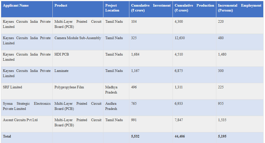 ইলেকট্রনিক্স কম্পোনেন্ট ম্যানুফ্যাকচারিং স্কিম-এর অধীনে ₹৫,৫৩২ কোটি টাকার ৭টি প্রকল্প অনুমোদিত।