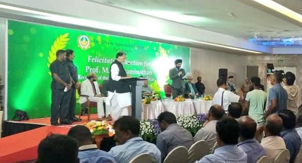 The Union Minister of Agriculture and Farmers’ Welfare, Shri Radha Mohan Singh hailed the efforts of Prof. M. S. Swaminathan, the architect of India’s Green Revolution and said that India is today not only self-sufficient in foodgrains but is also an exporter due to his efforts. Shri Singh appreciatedand felicitated Professor M. S. Swaminathan, the recipient of the World Agriculture Prize at an event in Chennai.