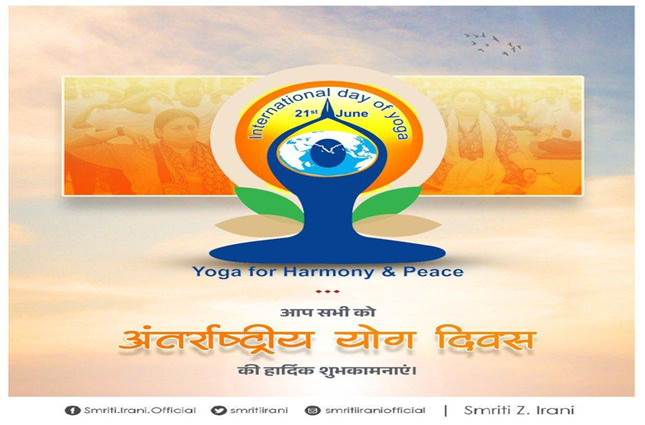 अंतर्राष्ट्रीय योग दिवस की शुभकामनाएं: श्रीमती स्मृति ज़ूबिन इरानी