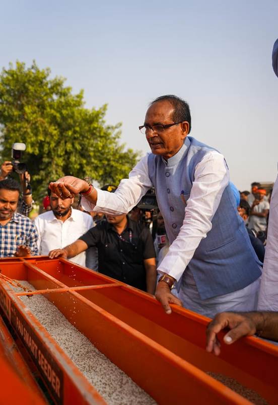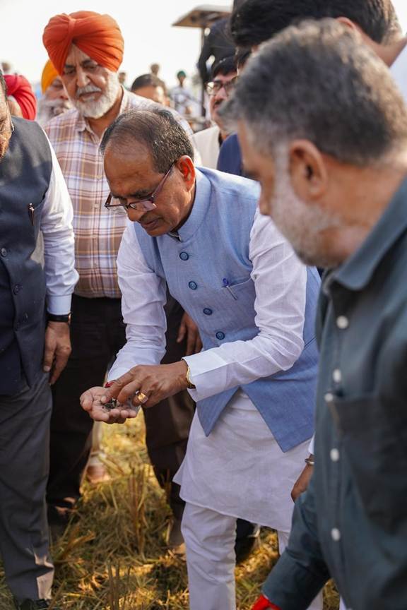 कृषि मंत्री श्री चौहान ने गेहूं की बुआई के लिए हैप्पी स्मार्ट सीडर मशीन का प्रदर्शन भी देखा