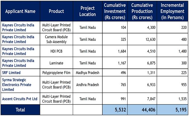 The approved projects cover key components like High-Density Interconnect (HDI) PCBs, Multi-Layer PCBs, Camera Modules, Copper Clad Laminates, and Polypropylene Films.