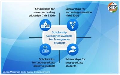 - Scholarship Schemes: The scholarships are aimed at reducing incidences of drop-out and aiding transition from the elementary to the secondary stage for transgender students through an automated online system using a single login credential.