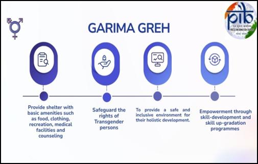 - 21 Garima Grehs, shelter homes for destitute transgender persons in 17 States namely Andhra Pradesh, Assam, Bihar, Chhattisgarh, Delhi, Gujarat, Jharkhand, Karnataka, Madhya Pradesh (2), Maharashtra (3), Manipur, Odisha, Punjab, Rajasthan, Tamil Nadu, Uttar Pradesh and West Bengal (2) have been set up. Recently 3 more Garima Grehs have been sanctioned at Puducherry, Basti and Gautambudhnagar.