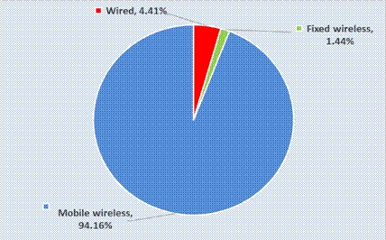 वायरलेस (फिक्स्ड+मोबाइल) एक्सेस इंटरनेट ग्राहक
