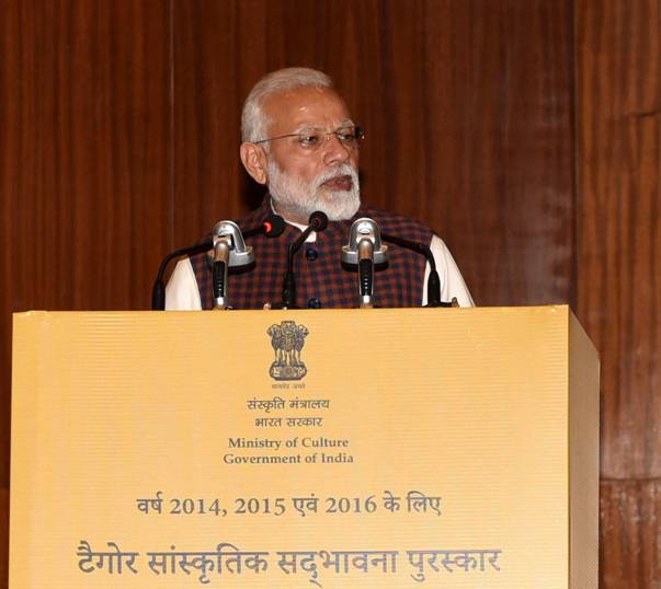 याप्रसंगी बोलताना पंतप्रधान नरेंद्र मोदी म्हणाले की, प्रत्येक राष्ट्राची संस्कृती ही त्याची जीवनधारा असते आणि या संस्कृतीमुळे प्रत्येक व्यक्तीला स्वत:ची ओळख प्राप्त होते. पंतप्रधान पुढे म्हणाले की, विदेशी समावेशन आणि वसाहतवादाचा चेहरा भारताच्या समृद्ध सांस्कृतिक वारशामुळे जपला गेला आहे. आणि हे केवळ गुरूदेव रविंद्रनाथ टागोर तसेच स्वामी विवेकानंद यांसारख्या व्यक्तीमत्वांच्या योगदानामुळे शक्य झाले. पंतप्रधान पुढे म्हणाले की, भारताच्या बहुअंगी वारशावर गुरुदेवांच्या कार्याचा ठसा उमटलेला आहे. रविंद्र संगीतद्वारे आपल्या देशाचे विविध रंग परावर्तीत होतात जे कुठल्याही भाषांना बंधनकारक नाही. त्यांनी टागोरांची शिकवण ही चिरंतन असून त्यांच्या कार्याचा ठसा जागतिक पातळीवर उमटत आहे. लोककला आणि पारंपारिक नृत्य हे भारतीय संस्कृतीचे अविभाज्य निर्देशन करतात, असेही पंतप्रधान म्हणाले. मणिपूरी नृत्य शैलीत निपुण असलेले राजकुमार सिंघजित सिंग यांना वर्ष 2014 साठीचा पुरस्कार देण्यात आला तर बांगलादेशच्या छायानट या सांस्कृतिक संघटनेला वर्ष 2015 साठीचा त्यांनी गुरुदेव रविंद्रनाथ टागोर यांच्या जीवनकार्यावर आणि बंगालच्या कलेवर मुख्य भूमिका वठवल्याप्रित्यर्थ देण्यात आला. वर्ष 2016 साठी लोकप्रिय शिल्पकार आणि शिष्यवृत्तीधारक राम वाणजी सुतार यांना देण्यात आला.