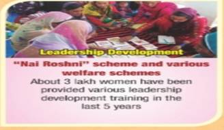 Leadership Development:“Nai Roshni” scheme and various welfare schemes - Leadership development of women belonging to minority communities.About three (3) lakh women have been provided various leadership development training in the last five years.