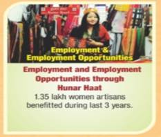 “Hunar Haats”,organised by the Union Ministry of Minority Affairs in various cities, offer unique opportunities to young entrepreneurs and aspirants to experiment and explore novel means of creativity coupled with livelihood.” “Hunar Haats” have a 50% reservation for women. It started at 20%, but over the years it has increased to ensure more women’s participation. There are a large number of women self-help groups associated with Hunar Haats.1.35 lakh women artisans have benefitted through Hunar Haats during the last three (3) years.
