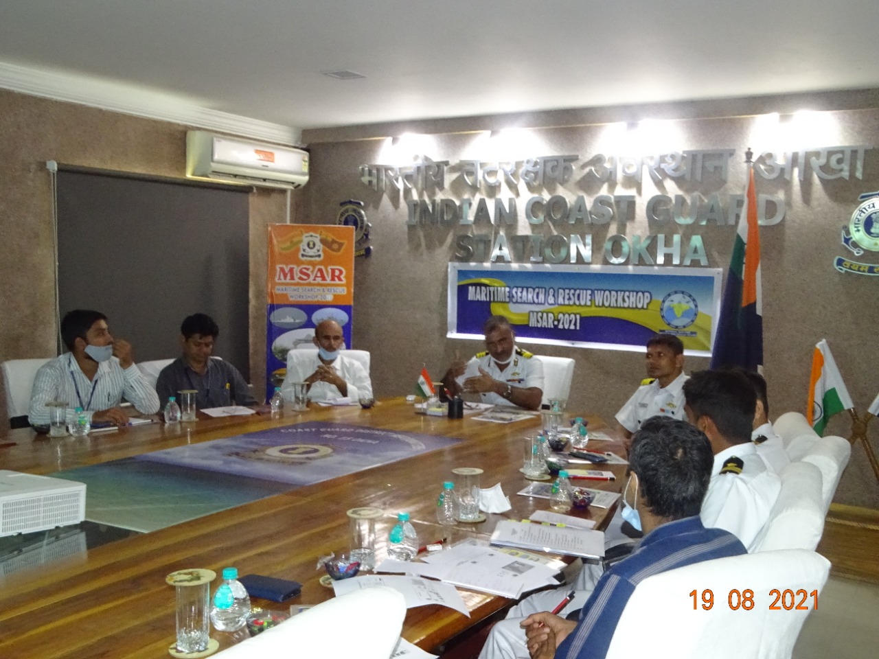 ભારતીય તટરક્ષક દળના જિલ્લા હેડક્વાર્ટર્સ નંબર 15, ઓખા ખાતે 19 ઑગસ્ટ 2021ના રોજ “મેરિટાઇમ સર્ચ અને રેસ્ક્યૂ વર્કશોપ”નું આયોજન કરવામાં આવ્યું હતું. વ્યાપક તૈયારીઓ માટે વિવિધ પહેલના અમલ, ક્ષમતા નિર્માણ, વિવિધ હિતધારકોમાં વધુ સારા સંકલન અને સહયોગ માટે આ વર્કશોપનું આયોજન કરવામાં આવ્યું હતું. દેવભૂમિ દ્વારકાના સબ ડિવિઝનલ મેજિસ્ટ્રેટ શ્રી એન.ડી. ભેતરિયા આ કાર્યક્રમમાં ગેસ્ટ ઓફ ઓનર તરીકે ઉપસ્થિત રહ્યા હતા. ભારતીય નૌસેના, રાજ્ય પ્રશાસન, માછીમારી સમુદાયના પ્રતિનિધિઓ, ભારતીય રાષ્ટ્રીય માહિતી સેવા કેન્દ્ર, ગુજરાત મેરિટાઇમ બોર્ડ અને VTMS ઓખાએ પણ આ વર્કશોપમાં ભાગ લીધો હતો.