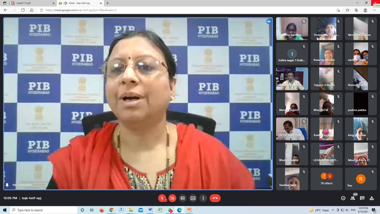 Delivering the inaugural address, Smt. Shruti Patil, Director, PIB & ROB, said the webinar was organised as the month of September is being observed as Poshan Maah (National Nutrition Month) by the Ministry of Women and Child Development, Govt of India. Recalling that the Poshan Abhiyaan was launched in March 2018 by the Prime Minister as a flagship programme to improve nutritional outcomes for children, pregnant women and lactating mothers aiming for Holistic Nutrition, she said that the webinar was an effort in terms of outreach. The Officers and staff of various media units of the Ministry of Information and Broadcasting, Govt of India, Department of Women Development and Child Welfare, Govt of Telangana including more than 100 Anganwadi teachers and other field functionaries participated in the webinar.