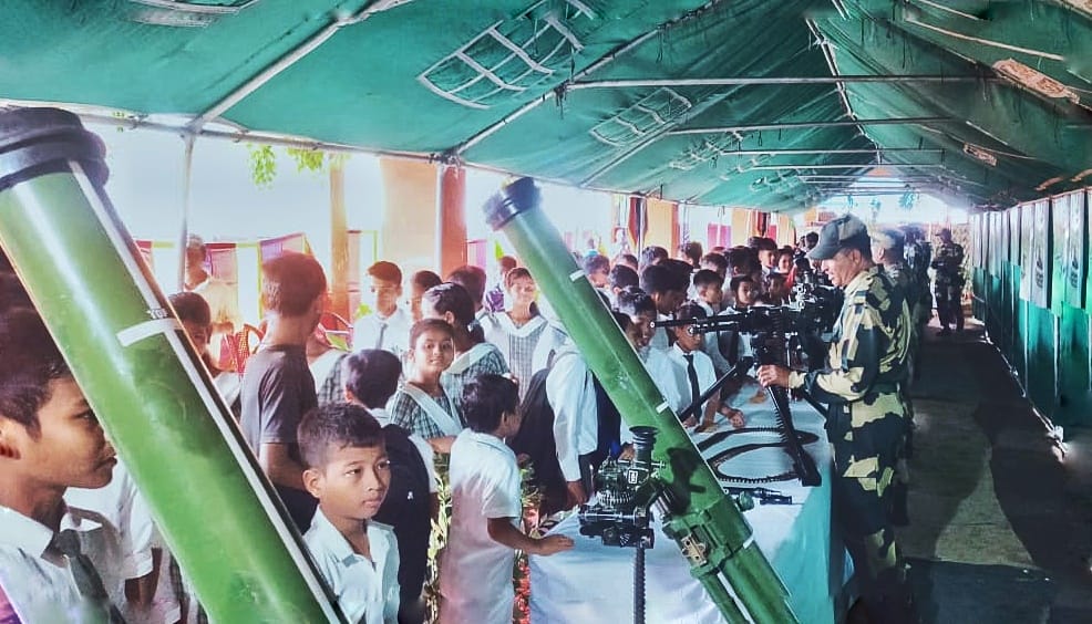 Celebrating ‘Azadi Ka Amrit Mahotsav’, on 12 Oct 2022, a weapon exhibition was organized by 04 Bn under BSF Meghalaya in the Bakur area of West Jaintia Hills district. The program was organised to exhibit the latest defence weapons and equipment used by BSF to thwart anti-national elements.