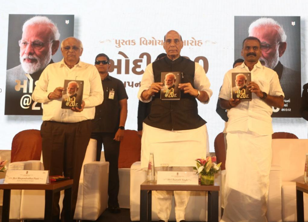 સંરક્ષણ મંત્રી શ્રી રાજનાથ સિંહે મોદી@20 પુસ્તકની ગુજરાતી આવૃત્તિનું વિમોચન કર્યું