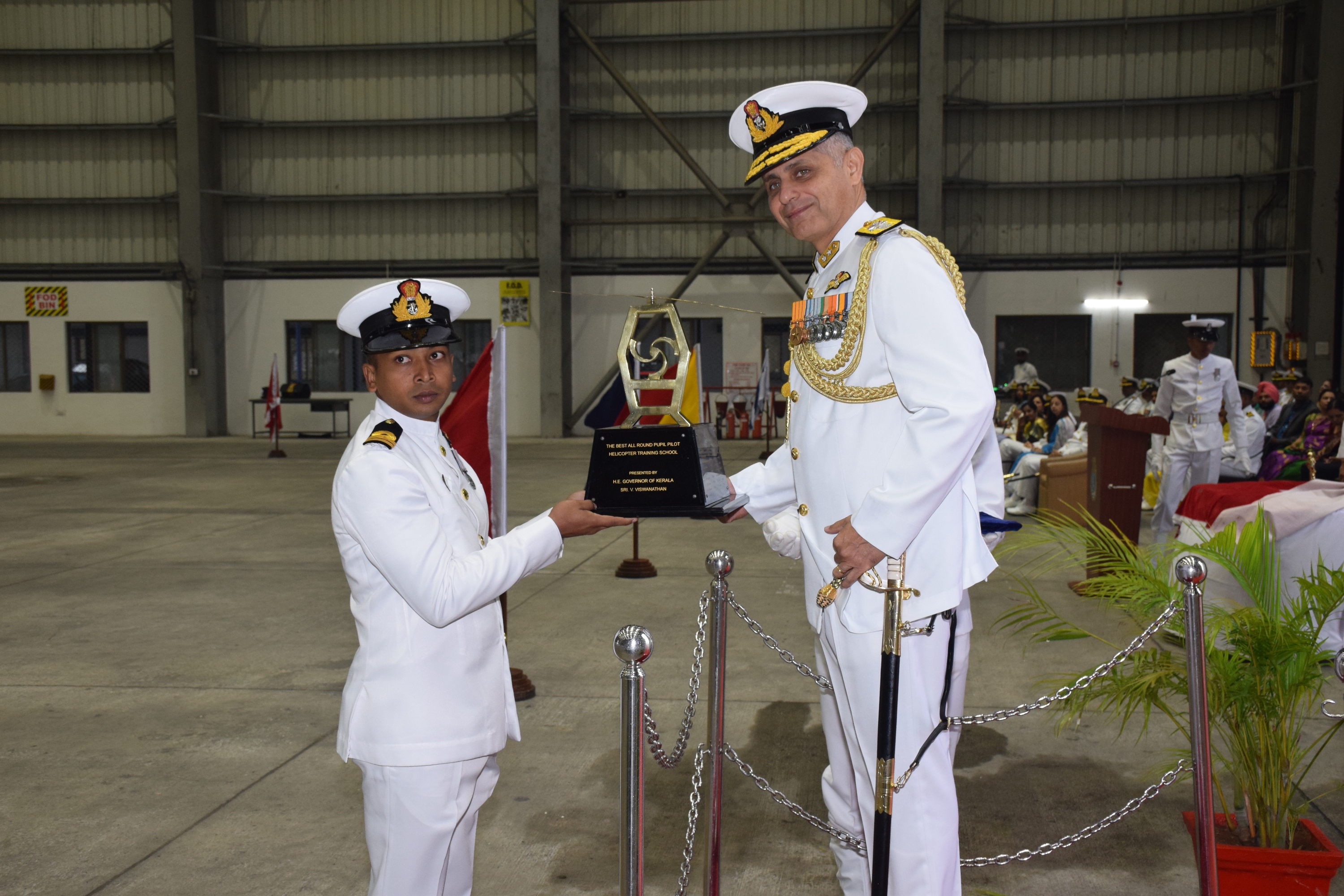 The Flag Officer Commanding-in-Chief, Eastern Naval Command Rolling Trophy for the trainee pilot standing first in order of merit in Flying was awarded to Lt Satishraj Pradhan. The Sub Lieutenant Kunte Memorial Book Prize for standing first in order of merit in ground subjects was awarded to Lt Rupesh B Hingase. The Governor of Kerala Rolling Trophy for standing first in overall order of merit in 99th HCC was awarded to Lt Satishraj Pradhan.