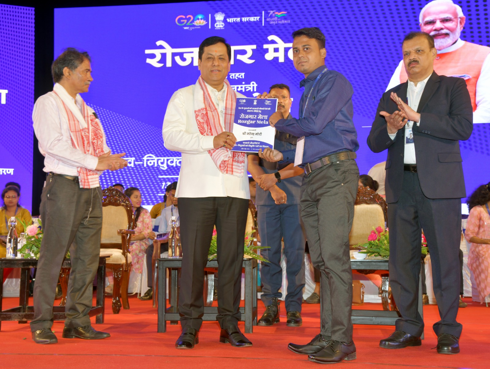 Here in Guwahati, the Union Minister of Ports, Shipping & Waterways and Ayush, Sarbananda Sonowal attended the ‘Rozgar Mela’ before appointment letters to 389 successful candidates were handed out. The appointed candidates will be joining State Bank of India (SBI), Mizoram Rural Bank, CGST & Customs (REV CBIC), Central Board of Direct Taxes (CBDT), Postal Dept, Bank of India, Central Bank of India, NABARD, SIDBI, Bank of Maharashtra, Canara Bank, Punjab National Bank (PNB), UCO bank, Railways, Geological Survey of India, Oil India, NEPA, DRDO, CSD (Defence) & Ministry of Statistics.
