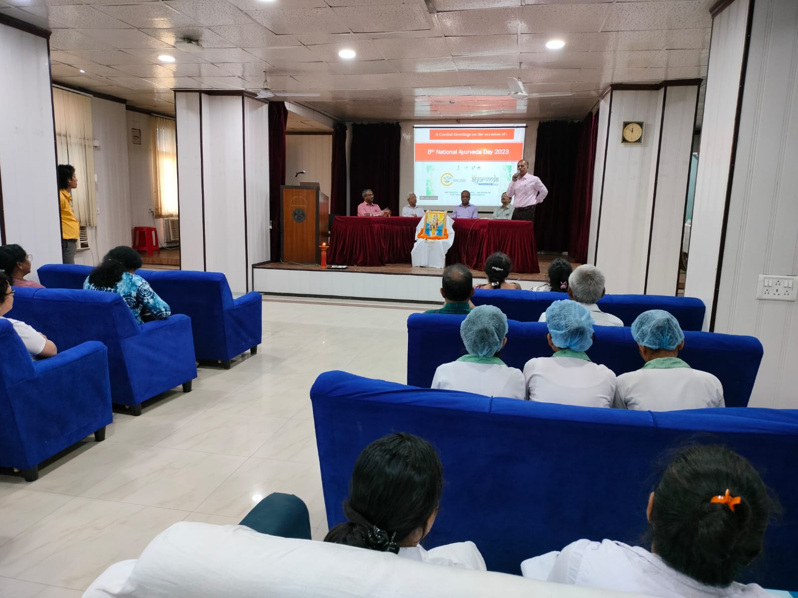 The auditorium of B. R. Singh Hospital at Eastern Railway resonated yesterday with insights into Ayurveda as it hosted the National Ayurveda Day 2023 celebration. The theme for this year's Ayurveda Day is "Ayurveda For One Health". The programme was graced by Chief Specialist-II, Dr. Subhankar Home, and Dr. Achintya Sanyal.