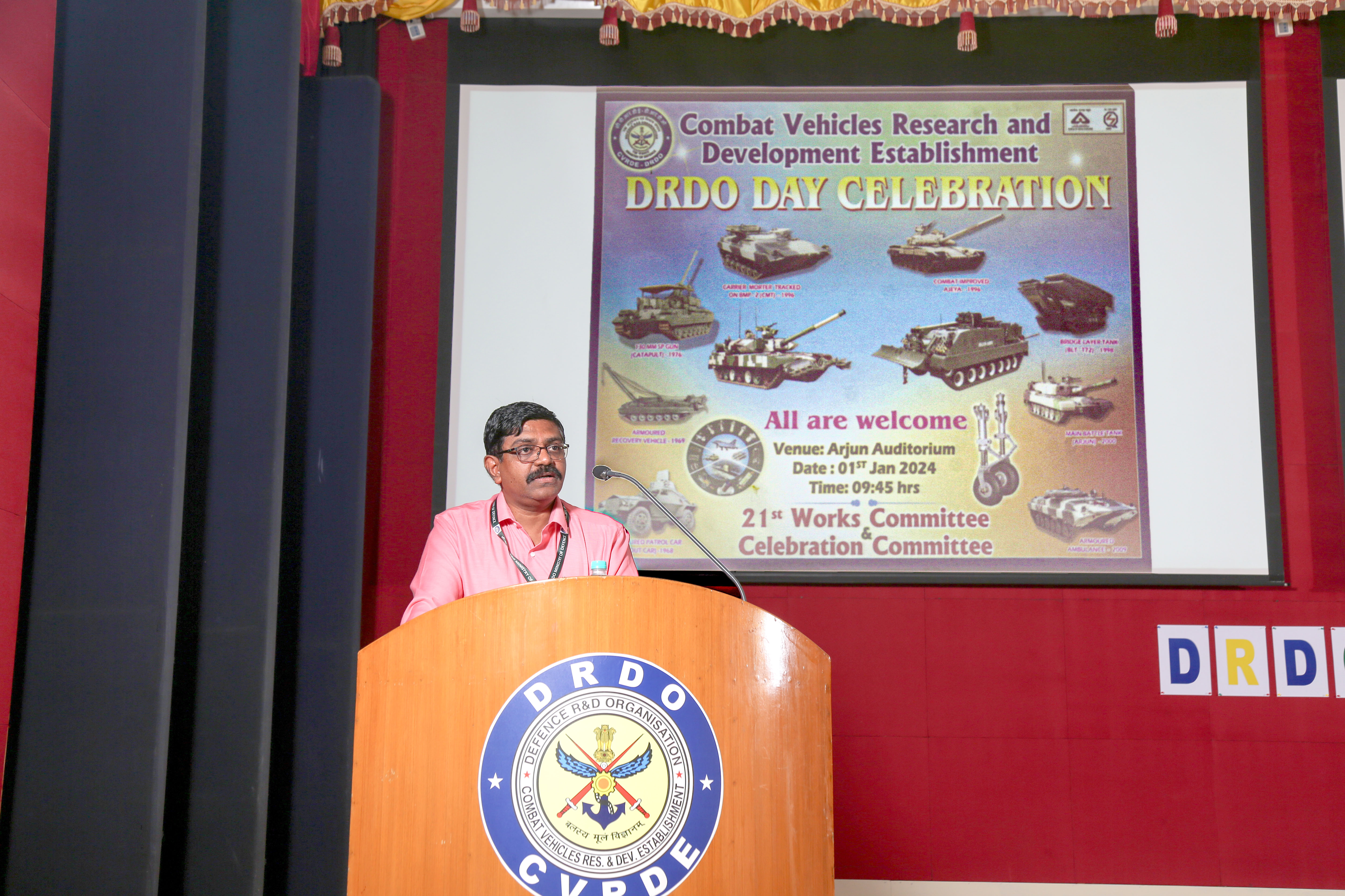 Shri L Balaji, Scientist E & Chairman, Celebration Committee delivered the welcome address and Shri AP Jothikumar, TA B, CVRDE Works Committee Medical Secy. delivered the vote of thanks in the function.