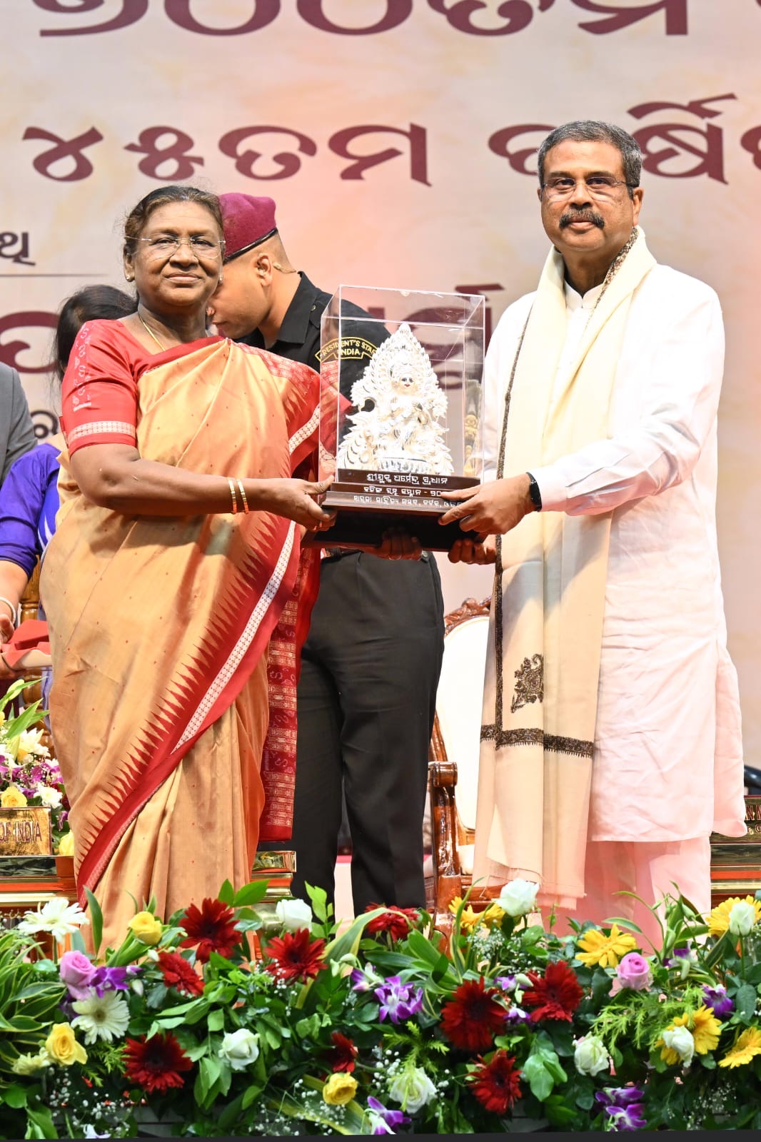 ରାଷ୍ଟ୍ରପତି ଶ୍ରୀମତୀ ଦ୍ରୌପଦୀ ମୁର୍ମୁ ଆଜି (୧୫ ଜୁଲାଇ ୨୦୨୫ରେ) କଟକ ଠାରେ ଆଦିକବି ସାରଳା ଦାସଙ୍କ ଜୟନ୍ତୀ ସମାରୋହରେ ଅତିଥି ଭାବେ ଯୋଗଦାନ କରିଛନ୍ତି। ଏହି ଅବସରରେ ସେ କେନ୍ଦ୍ର ଶିକ୍ଷା ମନ୍ତ୍ରୀ ଶ୍ରୀ ଧର୍ମେନ୍ଦ୍ର ପ୍ରଧାନଙ୍କୁ କଳିଙ୍ଗ ରତ୍ନ ପୁରସ୍କାର-୨୦୨୪ରେ ସମ୍ମାନିତ କରିଛନ୍ତି।