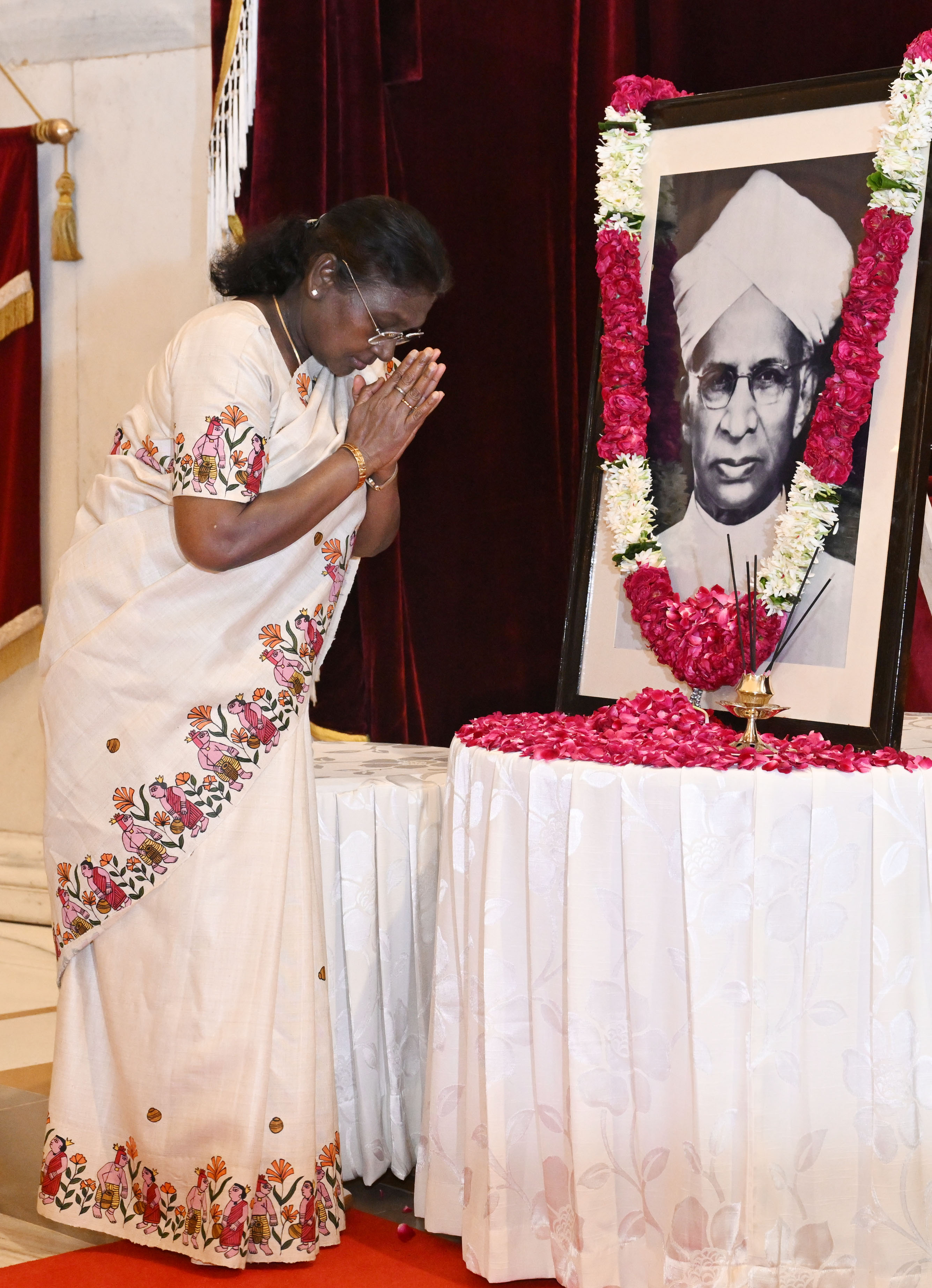 ಭಾರತದ ಗೌರವಾನ್ವಿತ ರಾಷ್ಟ್ರಪತಿ ಅವರು ಡಾ. ಸರ್ವಪಲ್ಲಿ ರಾಧಾಕೃಷ್ಣನ್ ಅವರ ಜನ್ಮದಿನದಂದು ಅವರಿಗೆ ಪುಷ್ಪ ನಮನ ಸಲ್ಲಿಸಿದರು