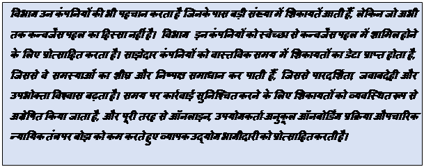 - कम्पनियां उपभोक्ताओं की शिकायतों का सक्रियतापूर्वक समाधान कर सकती हैं, जिससे विवादों को बढ़ने से रोका जा सकता है।