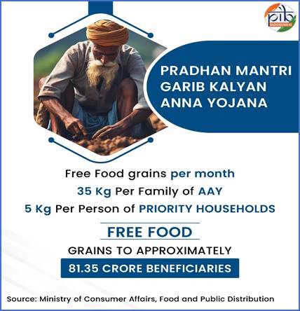 केन्द्र सरकारले गरीब लाभार्थीहरूमाथिको आर्थिक बोझ हटाउन र गरीबहरूको सहयोगका लागि कार्यक्रमको समग्र राष्ट्रव्यापी समानता तथा प्रभावकारी कार्यान्वयन सुनिश्चित गर्न, १ जनवरी २०२३ देखि प्रधानमन्त्री गरीब कल्याण अन्न योजना (पीएमजीकेएवाई) अन्तर्गत अन्त्योदय अन्न योजना (एएवाई) का घरपरिवार र प्राथमिकता प्राप्त घरपरिवार (पीएचएच) का लाभार्थीहरूलाई निशुल्क खाद्यान्न वितरण गर्ने निर्णय गरेको थियो। निशुल्क खाद्यान्न वितरणको अवधि १ जनवरी २०२४ देखि थप पाँच वर्षका लागि बढ़ाइएको छ, जसको अनुमानित वित्तीय व्यय रु. ११.८० लाख करोड़ हुनेछ र यो सम्पूर्ण रूपमा केन्द्र सरकारले व्यहोर्नेछ।