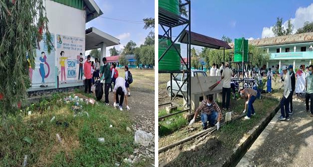 स्वच्छता अनि सामुदायिक भावना प्रोत्साहित गर्न पीआइबी इम्फालद्वारा विशेष अभियान 5.0 अन्तर्गत स्कूलमा स्वच्छता अभियान।