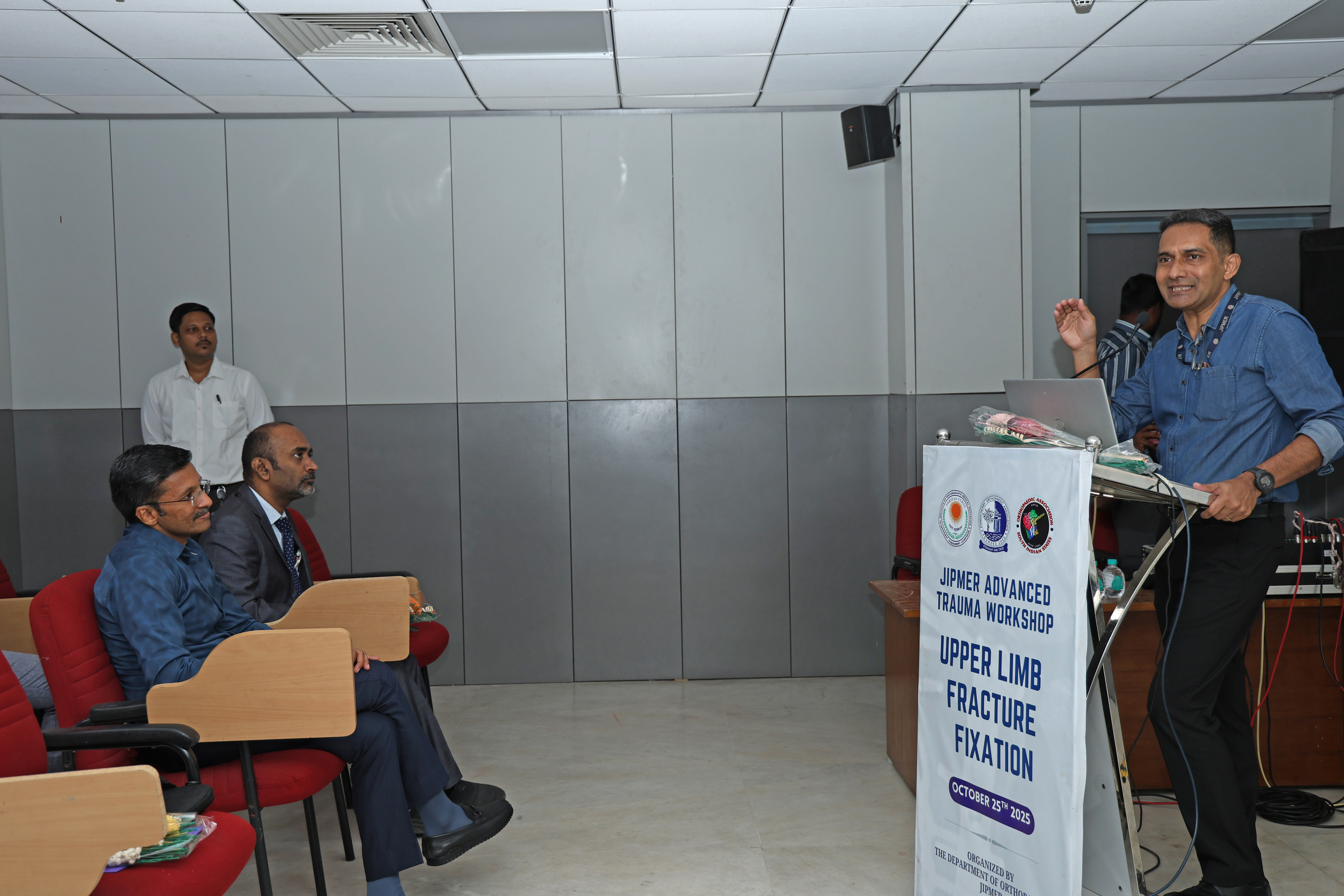 The Department of Orthopedics, JIPMER, Puducherry conducted an Advanced Trauma Workshop focusing on Upper Limb Fracture Fixation at Dr. APJ Abdul Kalam Auditorium, JIPMER on 25 October, 2025. The Workshop aims at enhancing surgical skills and optimising outcomes in patients with Upper Limb Trauma. The workshop is attended by delegates from Pondicherry, Chennai and various parts of Tamilnadu.