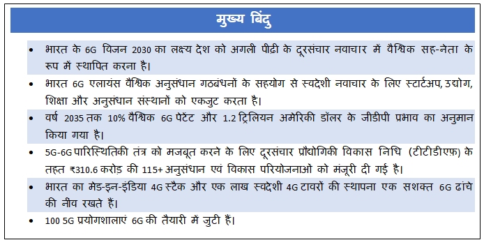 भारत का 6G विजन: भारत को वैश्विक दूरसंचार नवप्रवर्तक के रूप में स्थापित करना