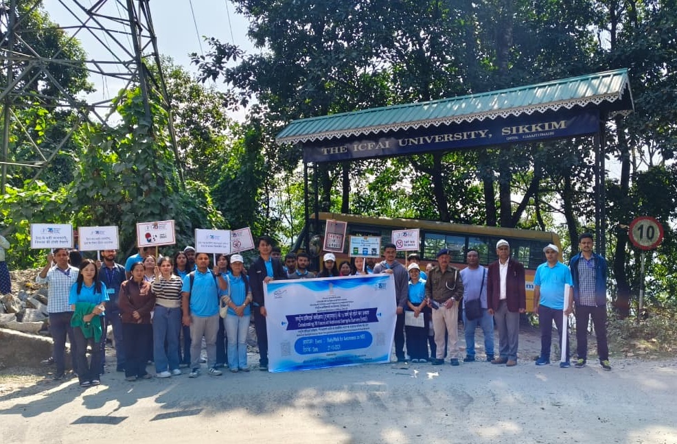An awareness rally highlighting the importance of public participation in surveys and addressing various social issues like Swachhata and substance abuse was held at Sichey-Ranka Road from the New STNM Hospital Gate to Bhanjhakri Falls, Gangtok, on 27/10/2025. Staff of RO Gangtok actively participated in the rally, displaying banners and slogans emphasizing the role of surveys in evidence-based policymaking and inclusive growth.