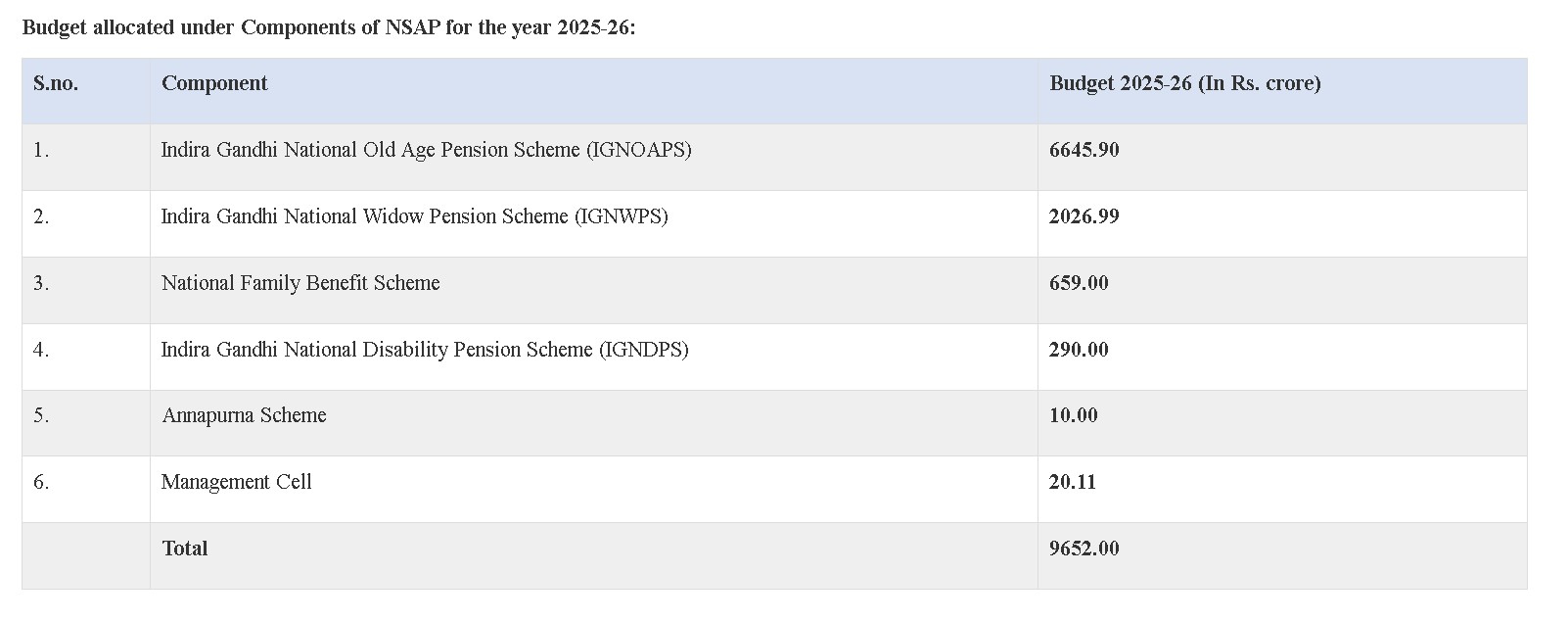 ২০২৫-২৬ আর্থিক বছরের জন্য এনএসএপি-এর বিভিন্ন উপাদানের অধীনে বরাদ্দকৃত বাজেট :
