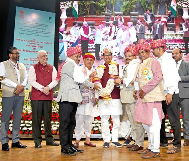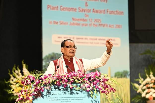 केंद्रीय कृषि एवं किसान कल्याण और ग्रामीण विकास मंत्री श्री शिवराज सिंह चौहान ने आज नई दिल्ली के पूसा कैंपस स्थित सी. सुब्रमण्यम सभागार में ‘पादप जीनोम संरक्षक पुरस्कार समारोह और पीपीवीएफआरए अधिनियम, 2001 के रजत जयंती व पीपीवीएफआरए (पौधा किस्म और कृषक अधिकार संरक्षण प्राधिकरण) के 21वें स्थापना दिवस कार्यक्रम में भागीदारी की और चयनिय किसान भाई-बहनों को पुरस्कृत किया।