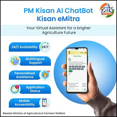 सितंबर 2023 में, पीएम-किसान योजना के लिए किसान-ई-मित्र नाम से एक एआई चैटबॉट लॉन्च किया गया, जो केंद्र सरकार की किसी प्रमुख योजना के साथ एकीकृत होने वाला पहला एआई चैटबॉट बन गया। यह एआई चैटबॉट किसानों को भुगतान, पंजीकरण और पात्रता संबंधी सवालों के स्थानीय भाषाओं में त्वरित, स्पष्ट और सटीक जवाब देता है। इसे ईकेस्टेप फाउंडेशन और भाषिणी के सहयोग से तैयार कि गया और बेहतर बनाया गया है। डिजिटल इंडिया पहल, भाषिणी का उद्देश्य भारतीय भाषाओं में इंटरनेट और डिजिटल सेवाओं तक आसान पहुंच को सरल बनाना और इन भाषाओं में सामग्री निर्माण में मदद करना है। पीएम-किसान शिकायत प्रबंधन प्रणाली में एआई चैटबॉट की शुरुआत का उद्देश्य किसानों को एक उपयोगकर्ता-अनुकूल और सुलभ मंच प्रदान करना है।