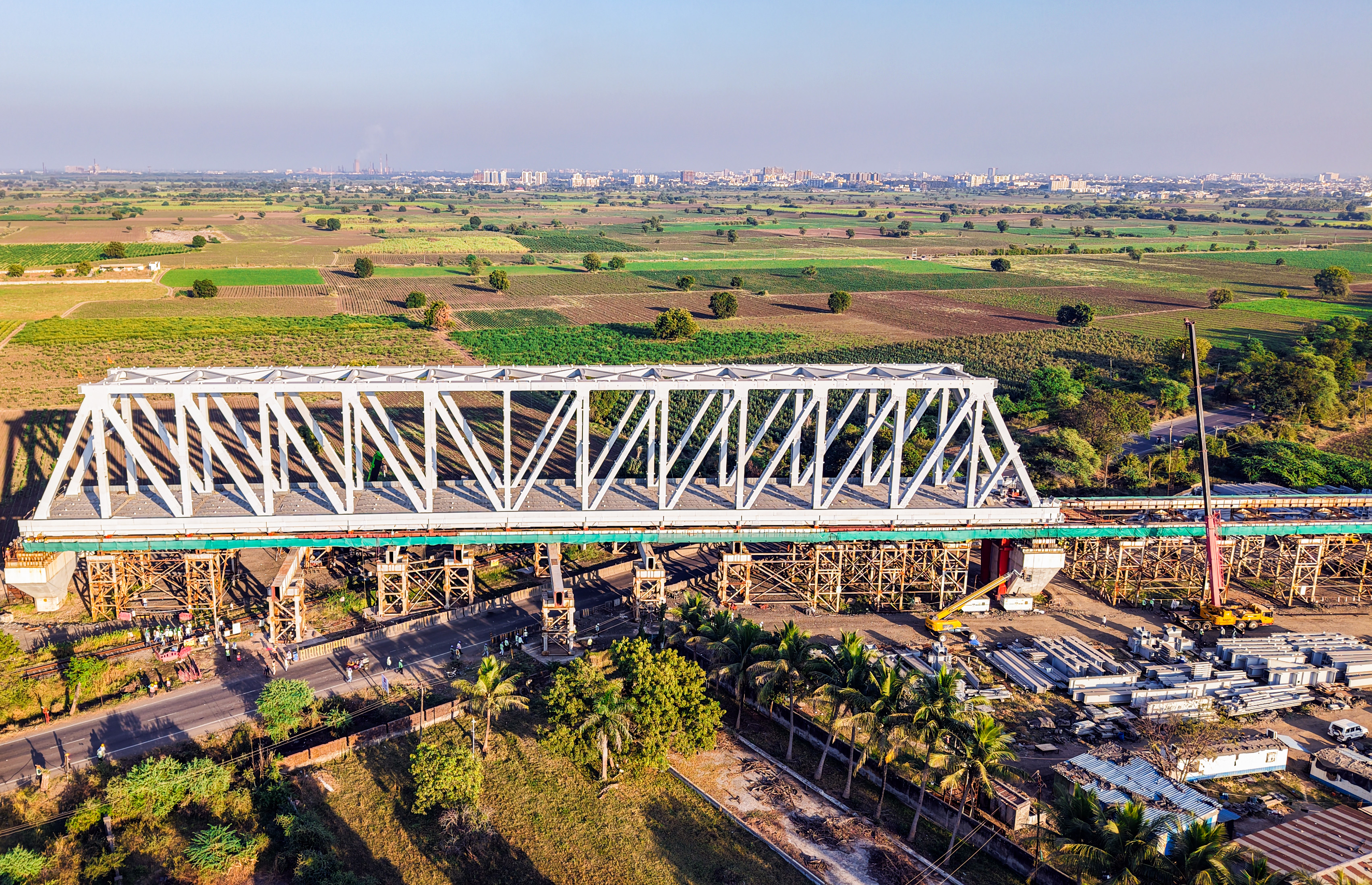 Mumbai Ahmedabad Bullet Train project has successfully completed the launching of 130 m span of a 230 m (130 +100) long steel bridge over National Highway-64 and Bharuch Dahej freight line of Indian Railway tracks near Kanthariya village, Bharuch district, Gujarat.