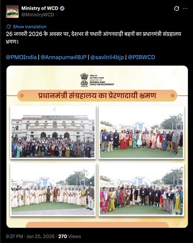 26 जनवरी 2026 के अवसर पर, देशभर से पधारी आंगनवाड़ी बहनों ने प्रधानमंत्री संग्रहालय का भ्रमण किया ।