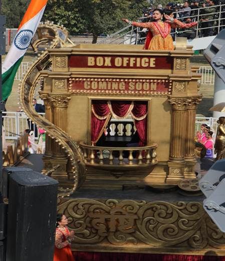 గణతంత్ర దినోత్సవ వేడుకల్లో భాగంగా సమాచార, ప్రసార మంత్రిత్వ శాఖ ఇవాళ కర్తవ్యపథ్లో ప్రదర్శించిన శకటం వివరాలు ఇలా ఉన్నాయి: "భారత్ గాథ: శృతి, కృతి, దృష్టి" పేరుతో రూపొందించిన శకటం, భారతదేశపు సుసంపన్న కథా వారసత్వాన్ని, ప్రాచీన మౌఖిక సంప్రదాయాల నుంచి నేటి ఆధునిక మీడియా, సినిమా వరకు సాగిన ప్రయాణాన్ని, దేశ సాంస్కృతిక వికాసాన్ని, కంటెంట్ క్రియేషన్ రంగంలో ప్రపంచ వేదికపై భారత్ శక్తిమంతమైన కేంద్రంగా ఎదిగిన తీరుని ఈ శకటం ప్రతిబింబించింది.