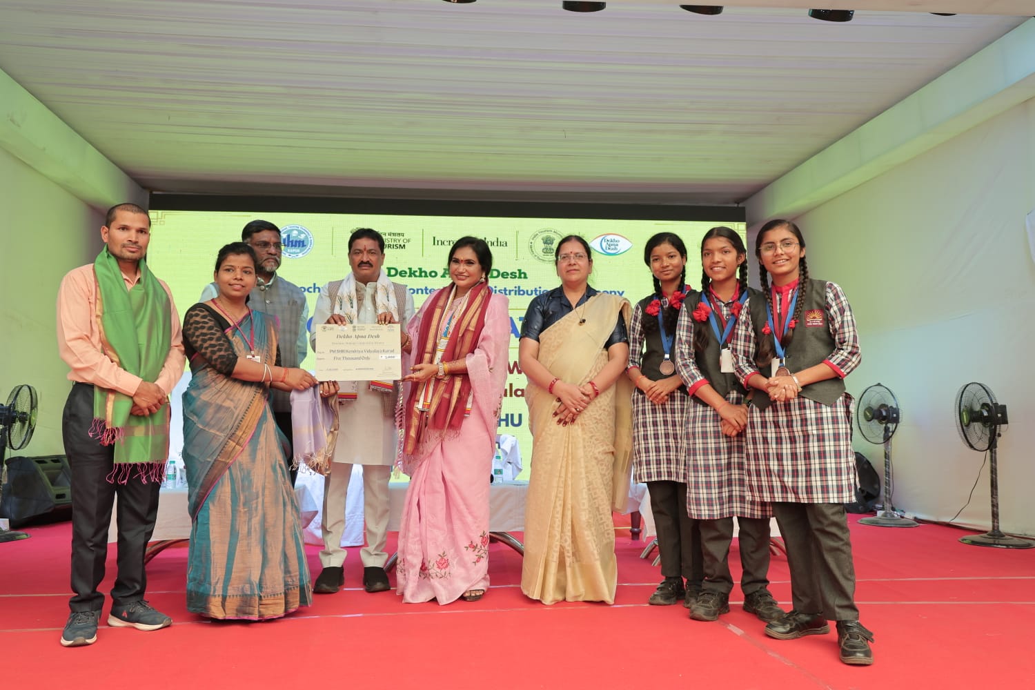 During the ceremony, winners of the ‘Dekho Apna Desh’ Brochure Making Competition at the State level were felicitated with cash prizes through cheques, medals, kits and certificates. Nearly 300 students from across the State attended the event along with their teachers and parents.