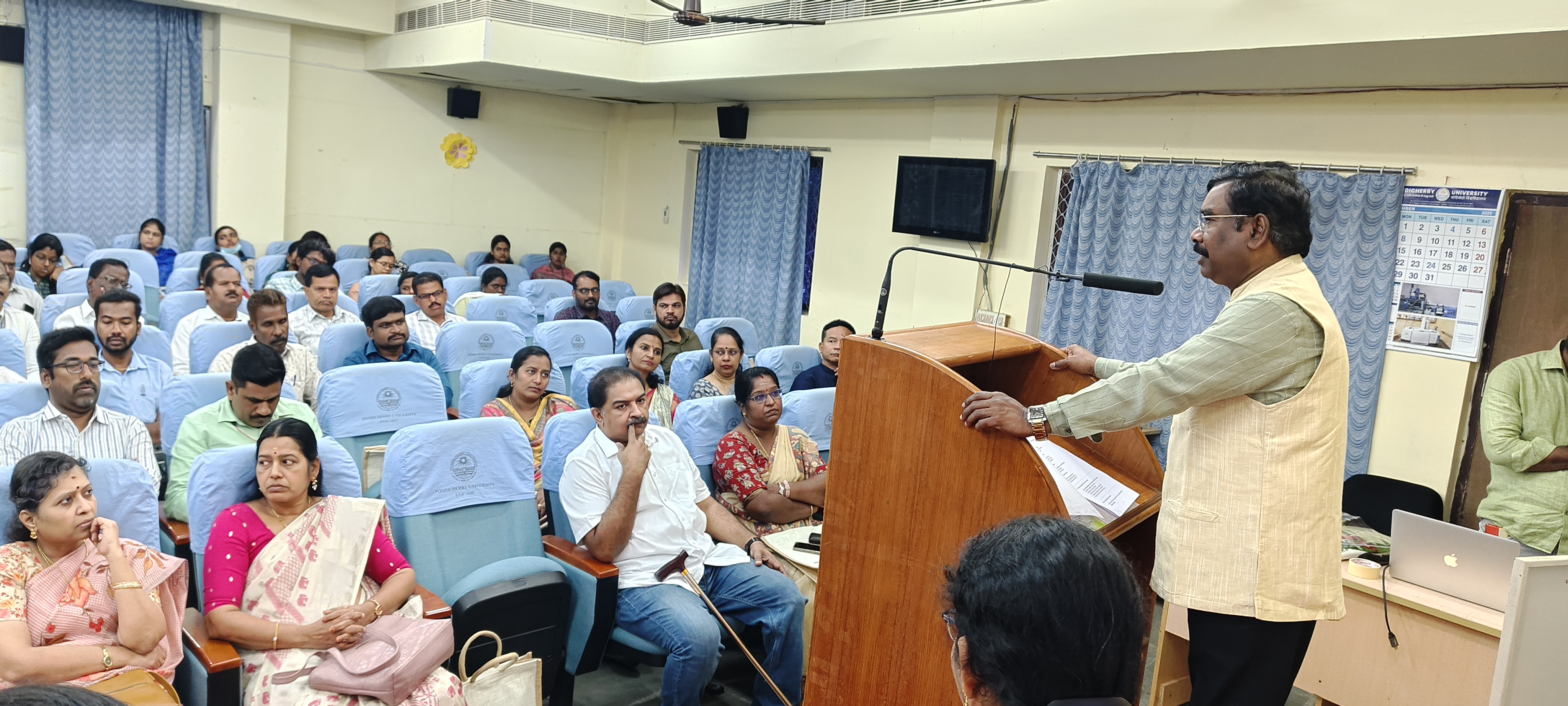 Dr. M. Vijayakumar, Coordinator, IKS Programme and Librarian, Pondicherry University, outlined the programme's scope and objectives, emphasizing interdisciplinary IKS integration in curriculum design and research.