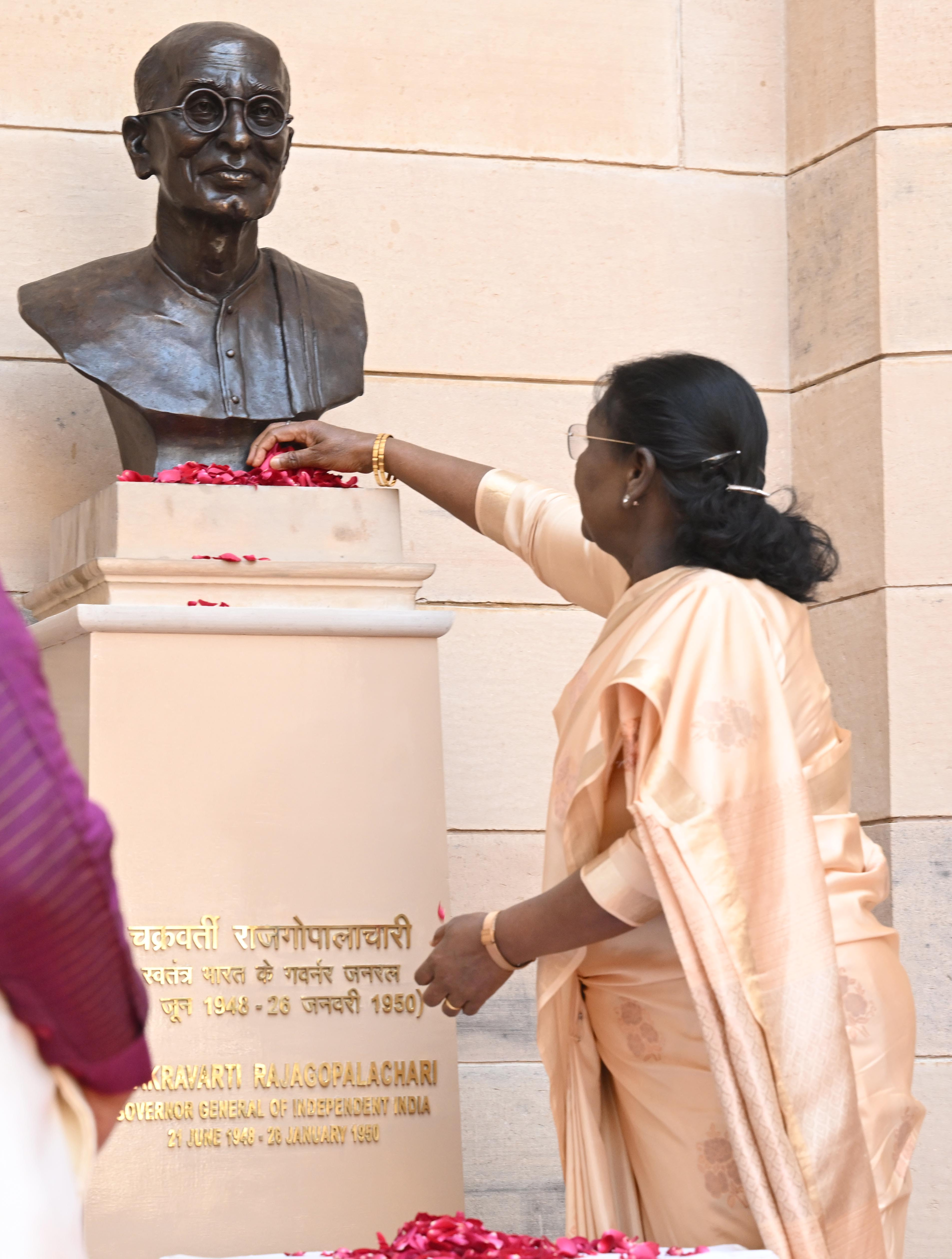 రాష్ట్రపతి భవన్లో చక్రవర్తి రాజగోపాలాచారి విగ్రహాన్ని ఆవిష్కరించిన భారత రాష్ట్రపతి... రాజాజీ ఉత్సవంలో పాల్గొన్న శ్రీమతి ద్రౌపది ముర్ము