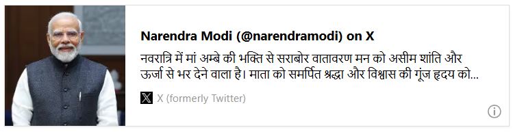 पंतप्रधानांनी नवरात्रीच्या आध्यात्मिक सारावर आणि आई अंबेच्या भक्तीमय दिव्य वातावरणावर प्रकाश टाकला.