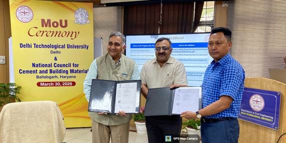 National Council for Cement and Building Materials signs MoU with Delhi Technological University to strengthen skill development and capacity building in construction sector
