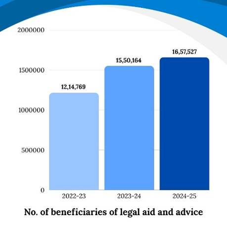 ভারতের আইনি সহায়তা ব্যবস্থা ২০২২–২৫ সালের মধ্যে ৪৪.২২ লক্ষ মানুষের কাছে পৌঁছেছে এবং ২৩.৫৮ কোটি মামলা লোক আদালতের মাধ্যমে নিষ্পত্তি হয়েছে।