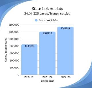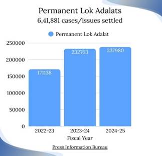 ২০২২–২৩ থেকে ২০২৪–২৫ সালের মধ্যে ২৩.৫৮ কোটি মামলা নিষ্পত্তি হয়েছে রাজ্য, স্থায়ী ও জাতীয় লোক আদালতের মাধ্যমে।