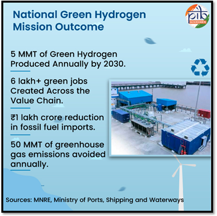 ভারত ২০৩০ সালের মধ্যে প্রতি বছর ৫ MMT গ্রীন হাইড্রোজেন বা হরিৎ হাইড্রোজেন উৎপাদনের লক্ষ্য স্থির করেছে।