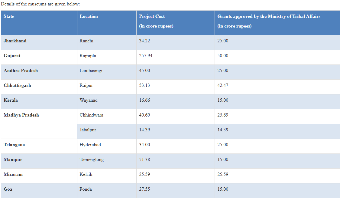 ছত্তিশগড়, ঝাড়খণ্ড এবং মধ্যপ্রদেশে ইতিমধ্যেই চারটি জাদুঘরের উদ্বোধন করা হয়েছে।