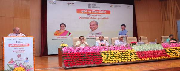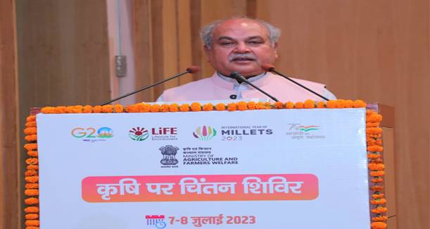 भारतीय कृषि के समग्र विकास के लिए केंद्रीय कृषि एवं किसान कल्याण मंत्रालय और कृषि अनुसंधान एवं शिक्षा विभाग (डेयर), भारतीय कृषि अनुसंधान परिषद् (आईसीएआर) द्वारा आयोजित दो दिवसीय चिंतन शिविर का सार्थक आयोजन कृषि एवं किसान कल्याण मंत्री श्री नरेंद्र सिंह तोमर के मुख्य आतिथ्य व राज्य मंत्री सुश्री शोभा करंदलाजे के विशेष आतिथ्य में संपन्न हुआ। दो दिनों में विचारों, अंतर्दृष्टि, अनुभवों का बहुत अच्छा आदान-प्रदान हुआ जिसमें कृषि क्षेत्र की उल्लेखनीय प्रगति एवं वर्तमान तथा भविष्य की चुनौतियों पर मंथन किया गया। समापन सत्र में श्री तोमर ने कहा कि देश में अधिकांशतः छोटे किसान हैं, जिनकी भलाई पर सदैव ध्यान केंद्रित रहना चाहिए। उन्होंने डिजिटल एग्री मिशन का विशेष उल्लेख करते हुए कहा कि इससे किसानों को अत्यधिक फायदा होगा।